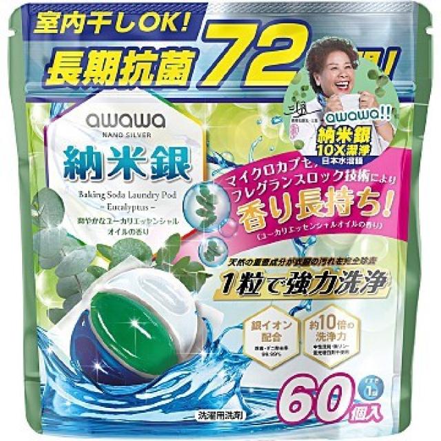 26226 買4送1!awawa 納米銀小蘇打深層潔淨洗衣珠 – 尤加利 13g x 60 枚 $65@1, $260@5