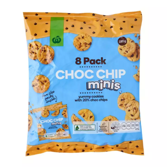 【澳洲零食】Woolworths 8 pk Choc Chip Mini Cookies 180g
