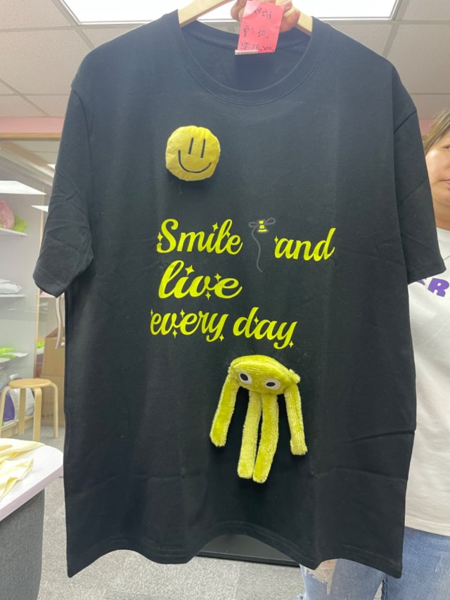 423【女裝】立體笑哈哈扣針Tee