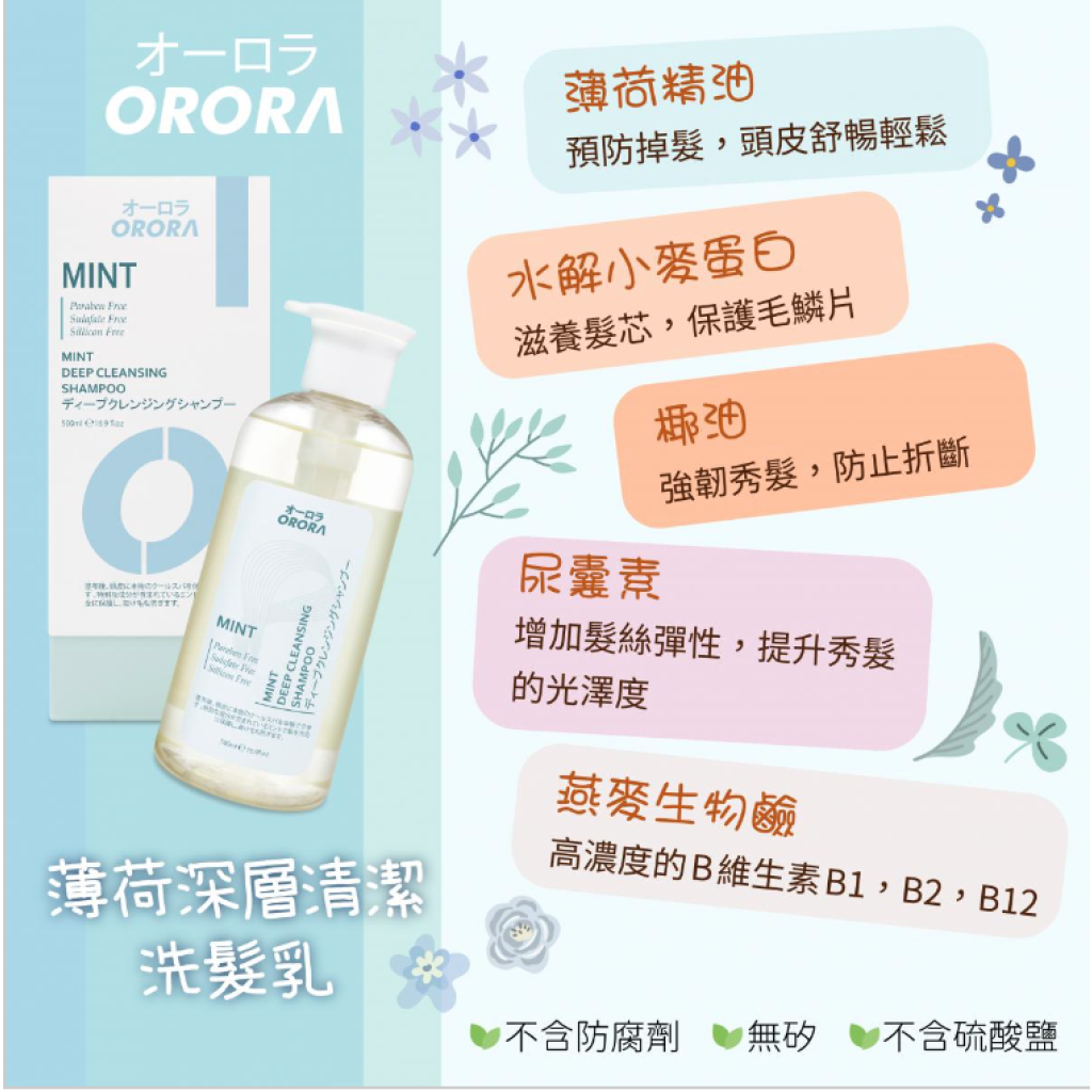 26112 Orora薄荷深層清潔洗髮乳 500ml $138@1, $409@5