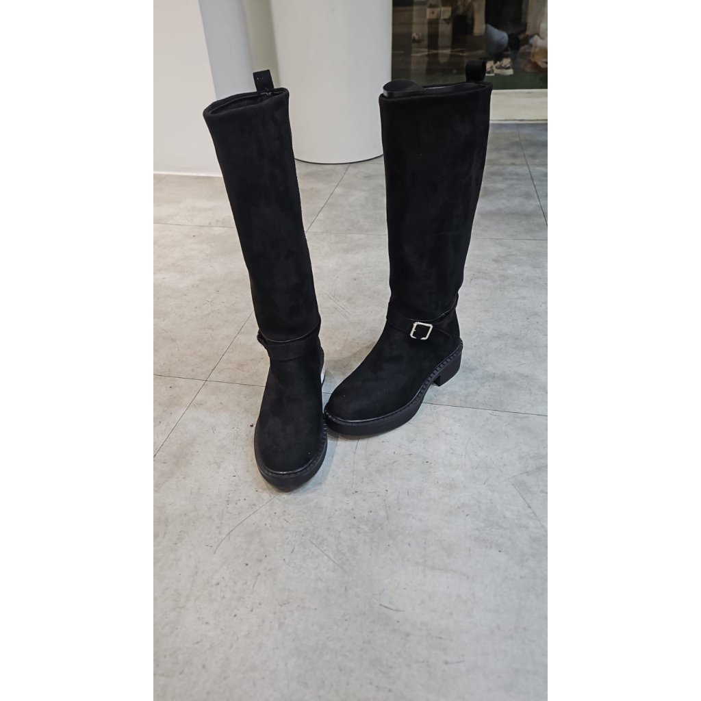 1125 黑色有扣絲絨長boot