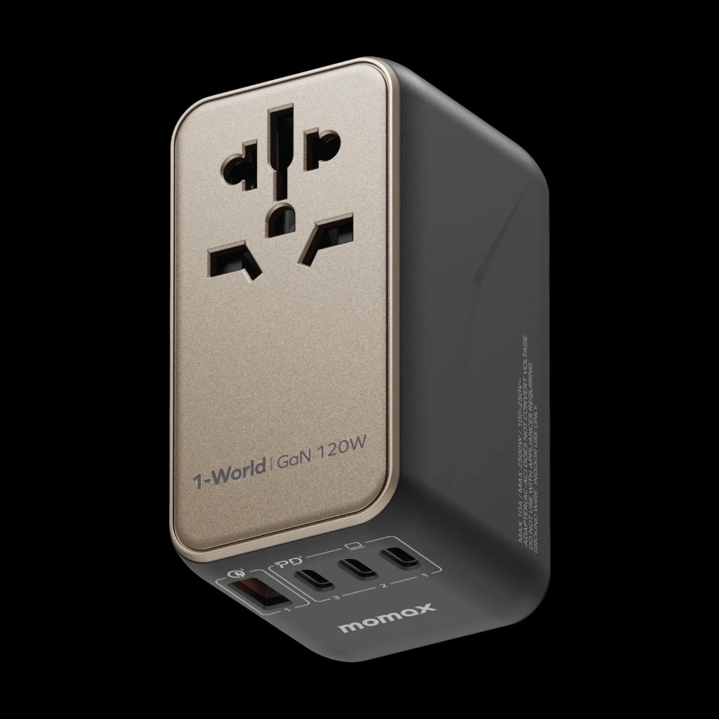 1217 1-World 120W GaN旅行充電插座, 內附100W USB-C充電線 (鈦色)