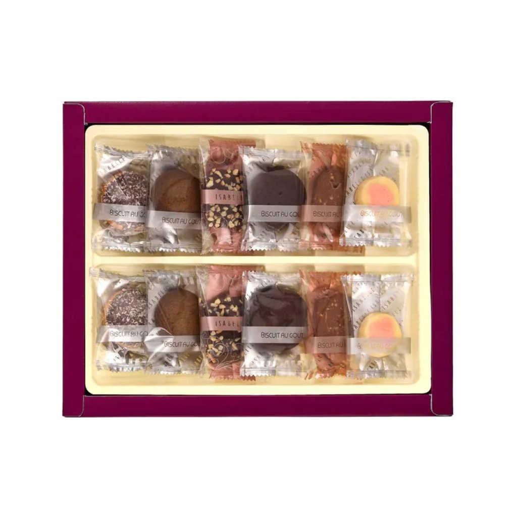 禮盒內容:甜心牛油曲奇 x 2, 咖啡杏仁曲奇 x 2, 紅莓紅酒曲奇 x 2, 朱古力杏仁薄餅 x 2, 阿薩姆茶曲奇 x 2, 椰絲朱古力曲奇 x 2
