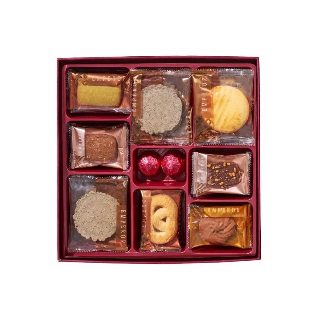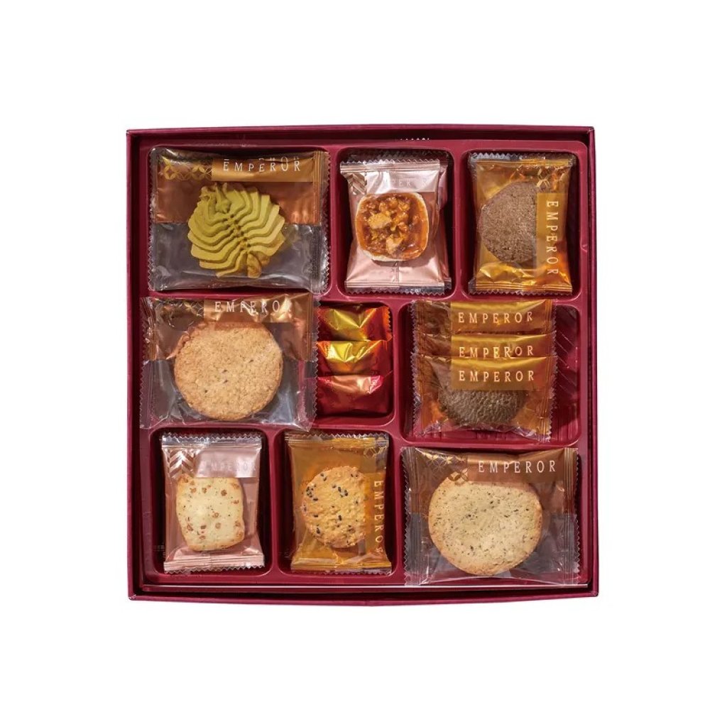 下層:葉形抹茶曲奇 x 3, 咖喱酥 x 3, 無糖黃金全麥曲奇 x 2, 烏龍茶曲奇 x 8, 玄米茶曲奇 x 4, 芝麻曲奇 x 4, 全麥柑橘曲奇 x 3, 香濃牛奶太妃糖 x 3