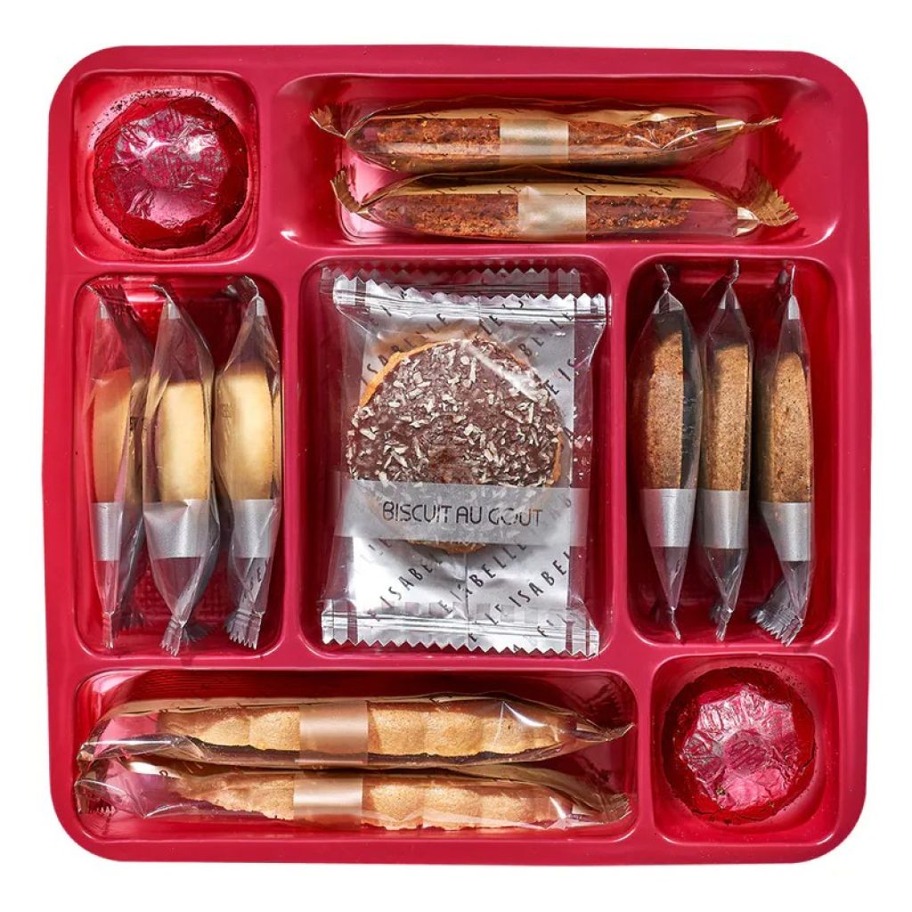 禮盒內容:阿薩姆茶曲奇 x 3, 焦糖杏仁船 x 2, 椰絲朱古力曲奇 x 2, 甜心牛油曲奇 x 3, 榛子味朱古力 x 2, 咖啡酥 x 2