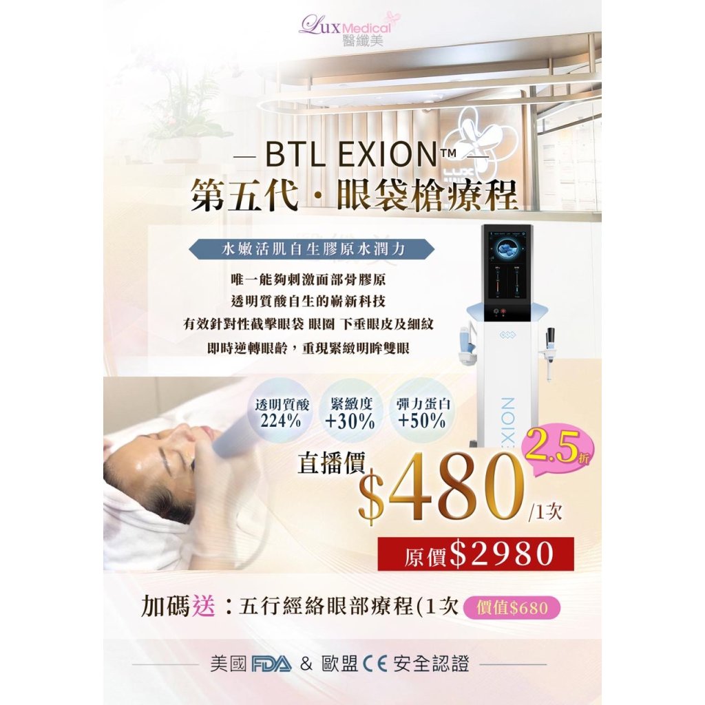 主頁 26127 BTL EXION 第五代 眼袋槍療程 $480@1